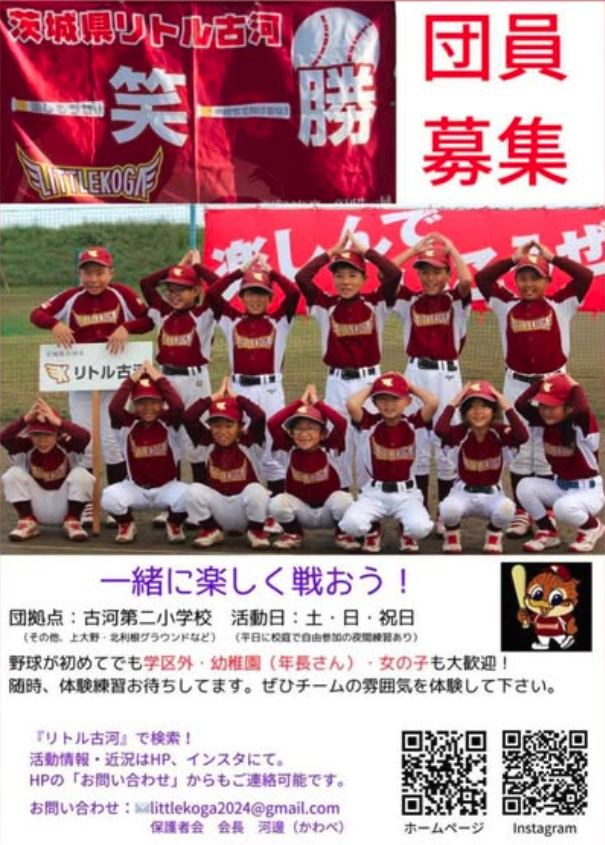 #古河市 #少年野球 #軟式野球 #野球チーム #未経験歓迎 #小学生