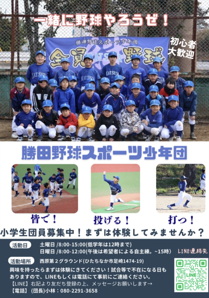 #ひたちなか市 #少年野球 #軟式野球 ##野球チーム #未経験歓迎 #小学生