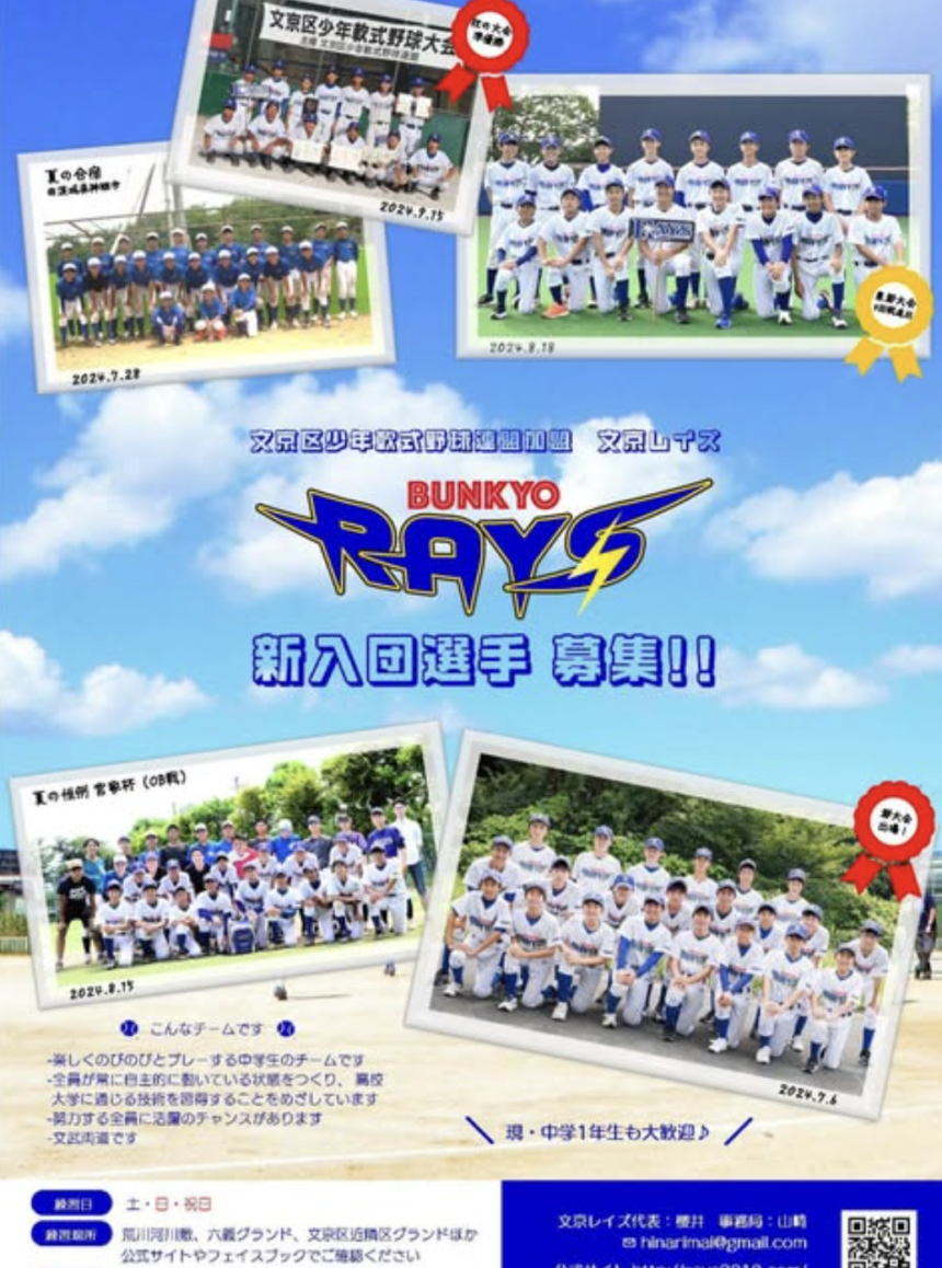 文京レイズは、2010年4月に設立した中学野球チームです。