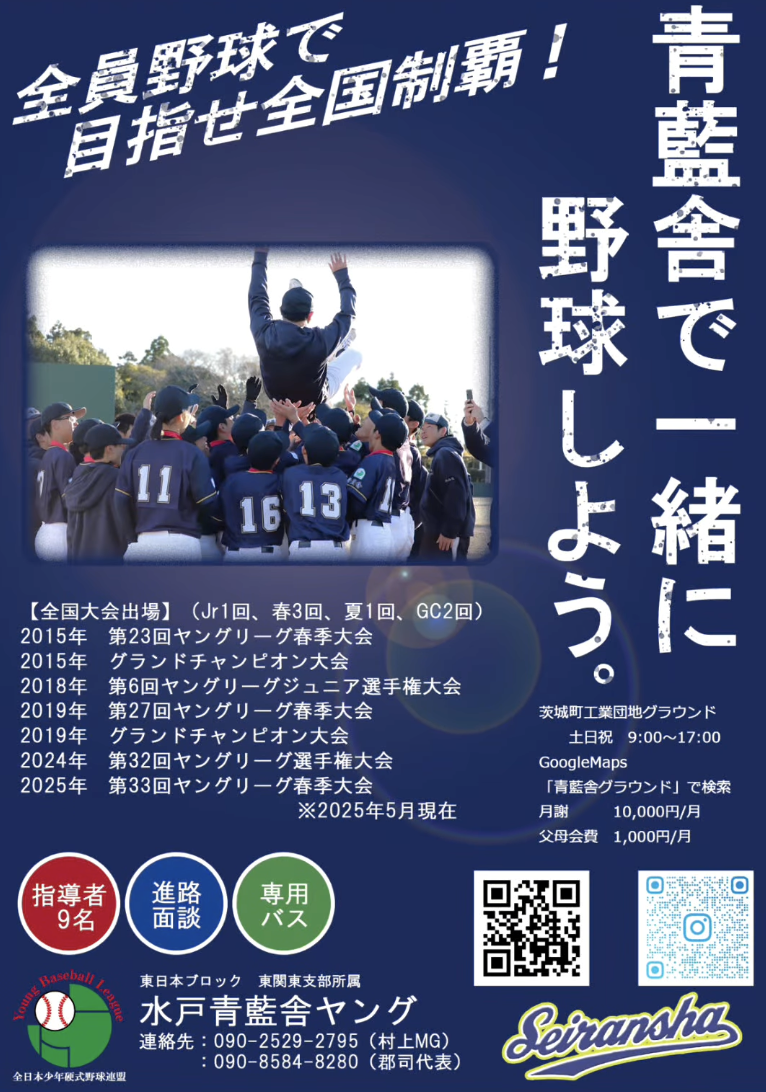 #水戸市 #ヤングリーグ #中学野球 #硬式野球 #父母当番なし #全国大会 #中学生