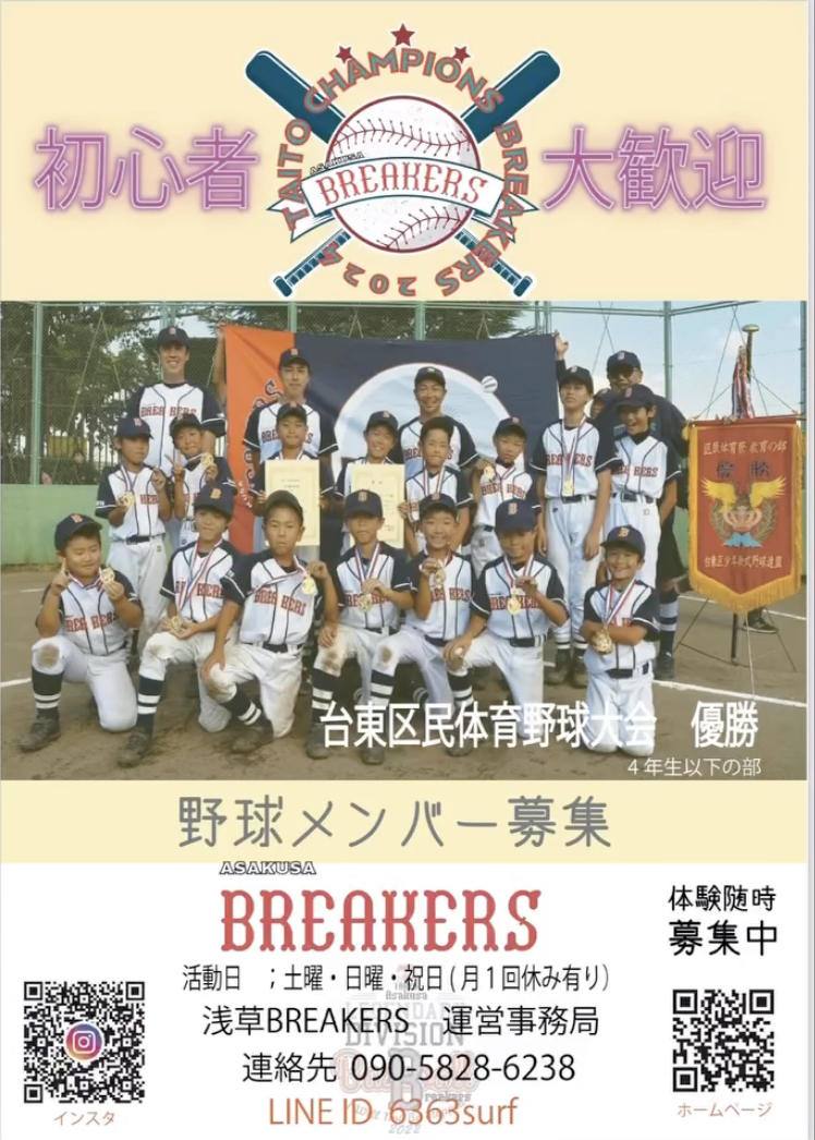 #台東 #少年野球 #軟式野球 #野球チーム #未経験歓迎 #小学生