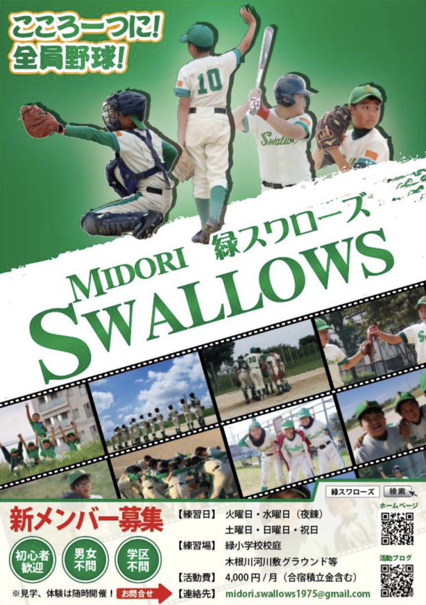 緑スワローズは墨田区の緑小学校近辺を拠点に活動する少年野球チームです。