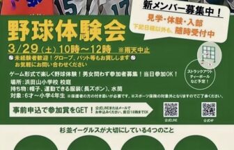 杉並イーグルスのチーム情報【練習日】土・祝日 8:00〜13:00日曜日 9:00〜13:00※試合等により変更あり【活動場所】浜田山…