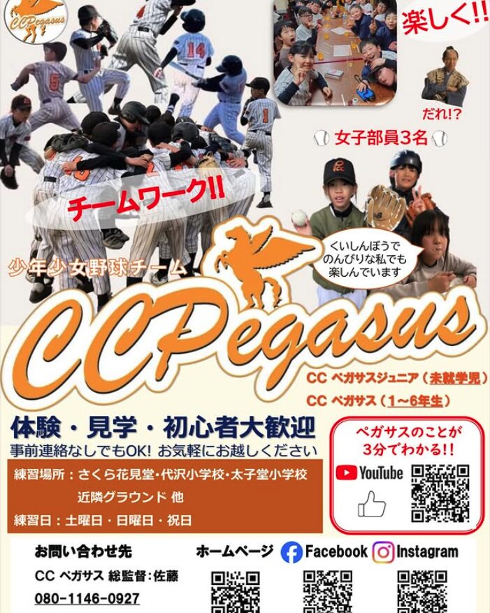 指導では、年齢や習熟度に応じたベースボールメソッドに基づく一貫指導と、CCペガサス独自の練習プログラムを採用しています。