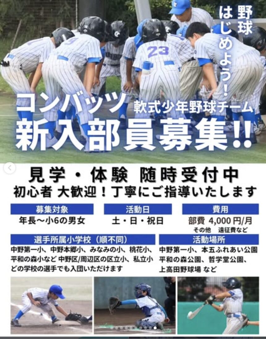 中野区・周辺区の区立小・私立小どの学校の選手でも入団可