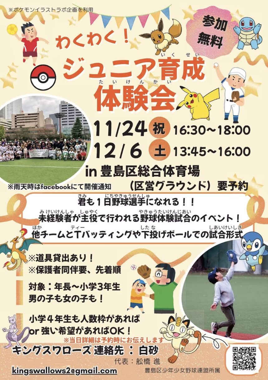 ※ユニフォーム、スパイク、野球用具などは実費購入です。