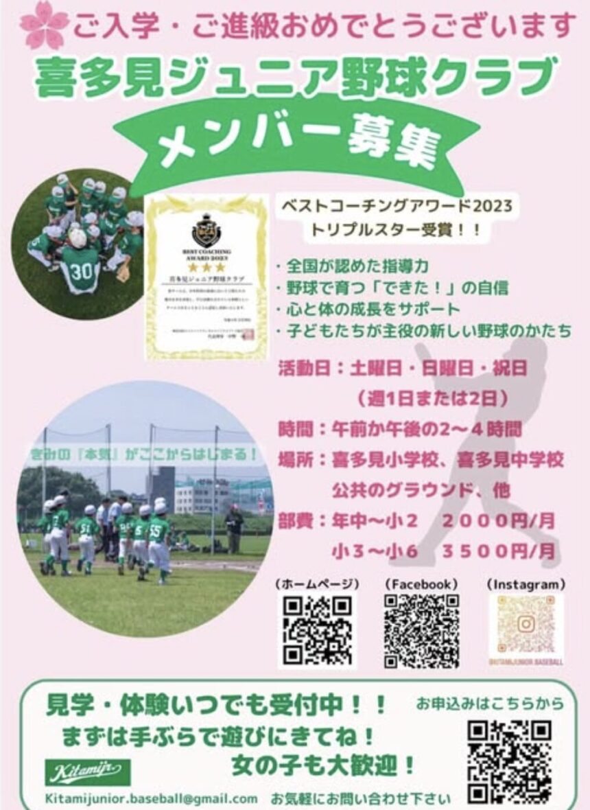 喜多見エリアの児童を中心に活動しており、低学年向け体験会やティーボール体験会も行っています。