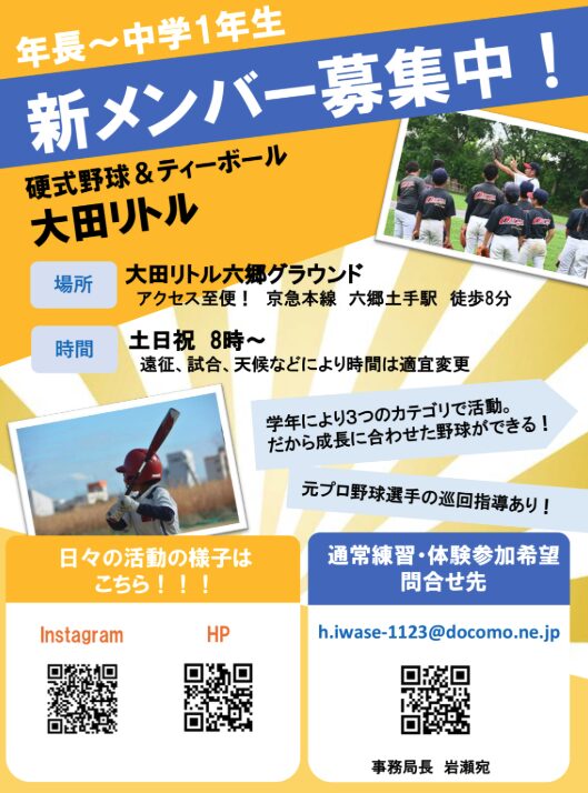 元プロ野球選手・副島孔太氏が大田リトル出身の総監督として指導。