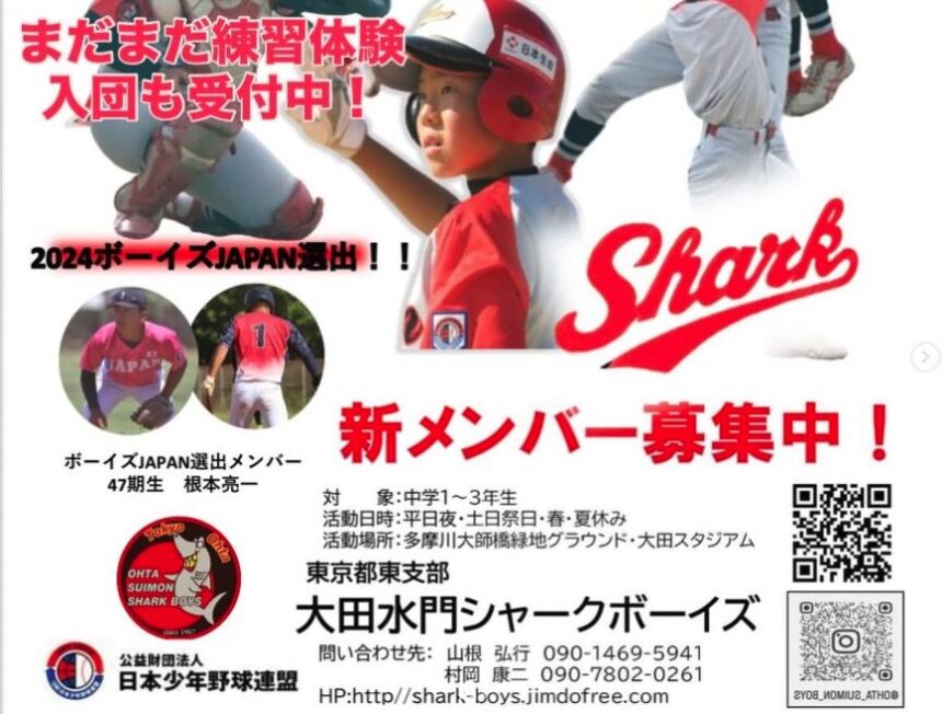 体験練習・見学は随時歓迎(遅刻・午前のみ参加も可)。大田区スポーツ協会・大田区硬式野球連盟加盟。