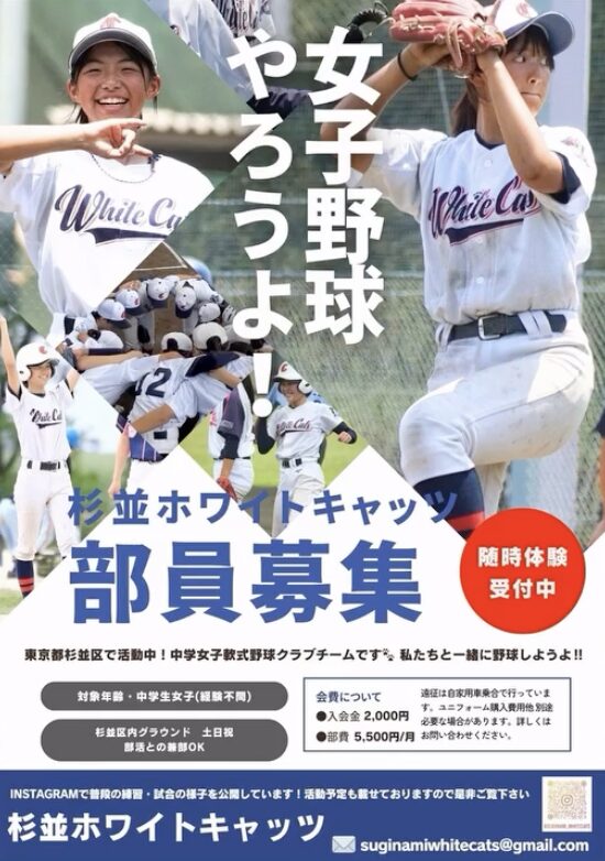 2018年3月に発足した、東京都杉並区に拠点を置く中学女子軟式野球チームです。