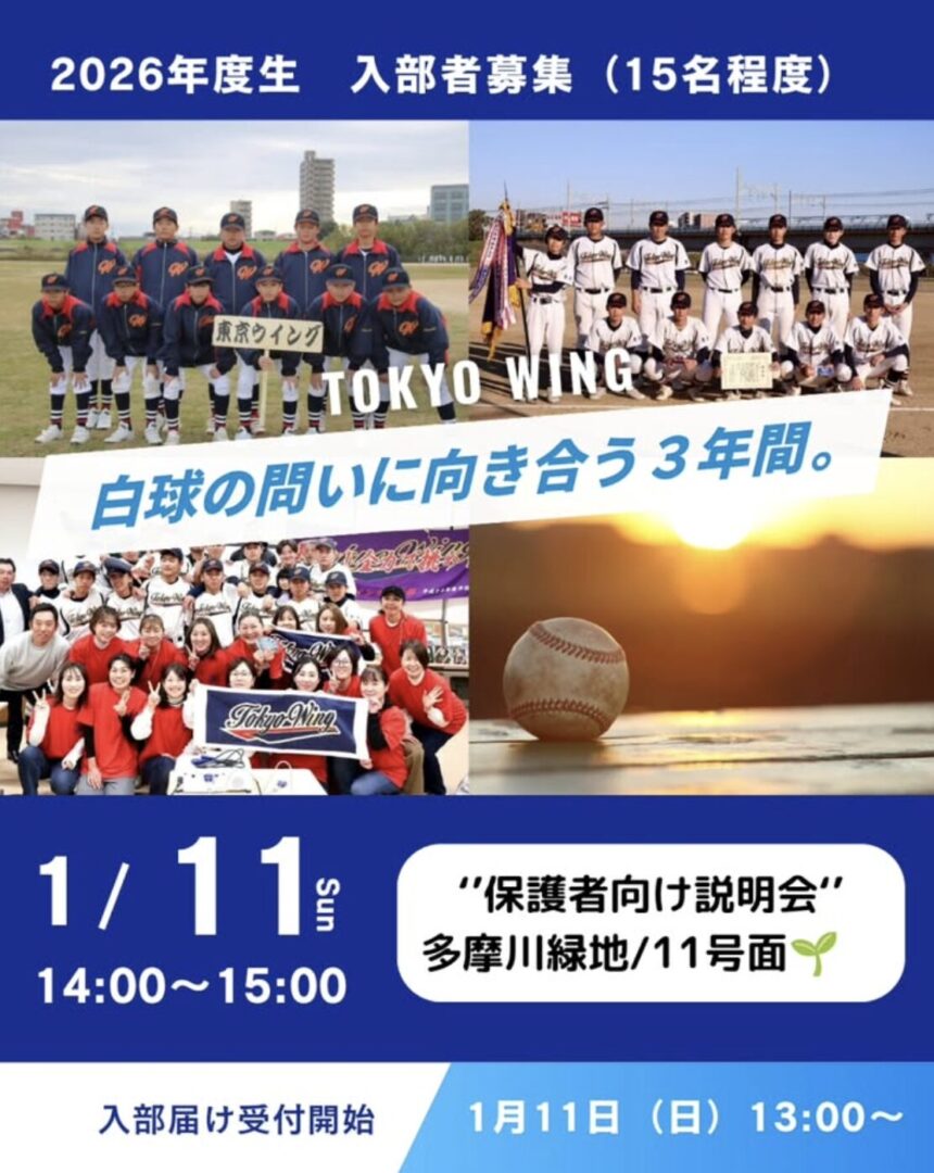 東京都大田区を拠点に活動する中学軟式野球チームです。1988年創設。「野球を通じて人間性を高める」をモットーに活動中。保護者の当番なし。2026年度新入部員募集中。体験希望者は通常練習への参加が可能です。