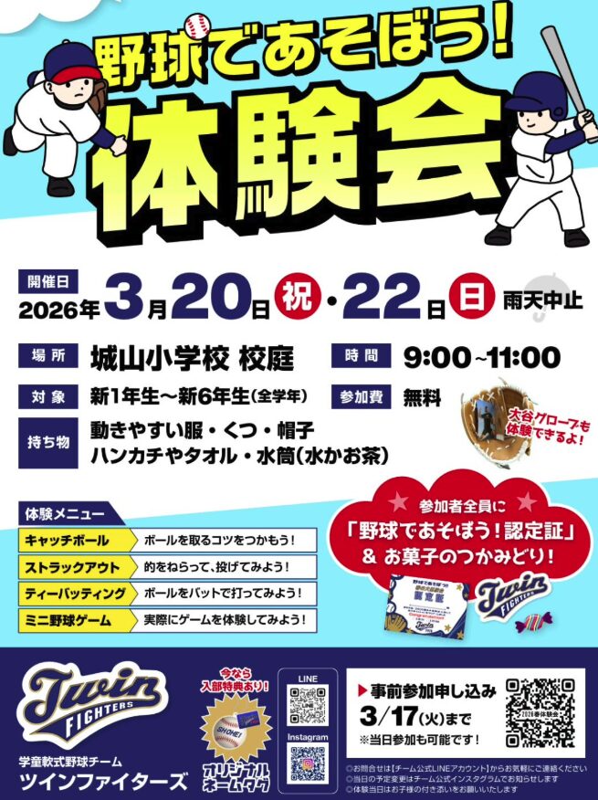 城山小・山崎小の2校を拠点とすることが名前の由来。公式LINE・メールから体験申し込み受付中。
